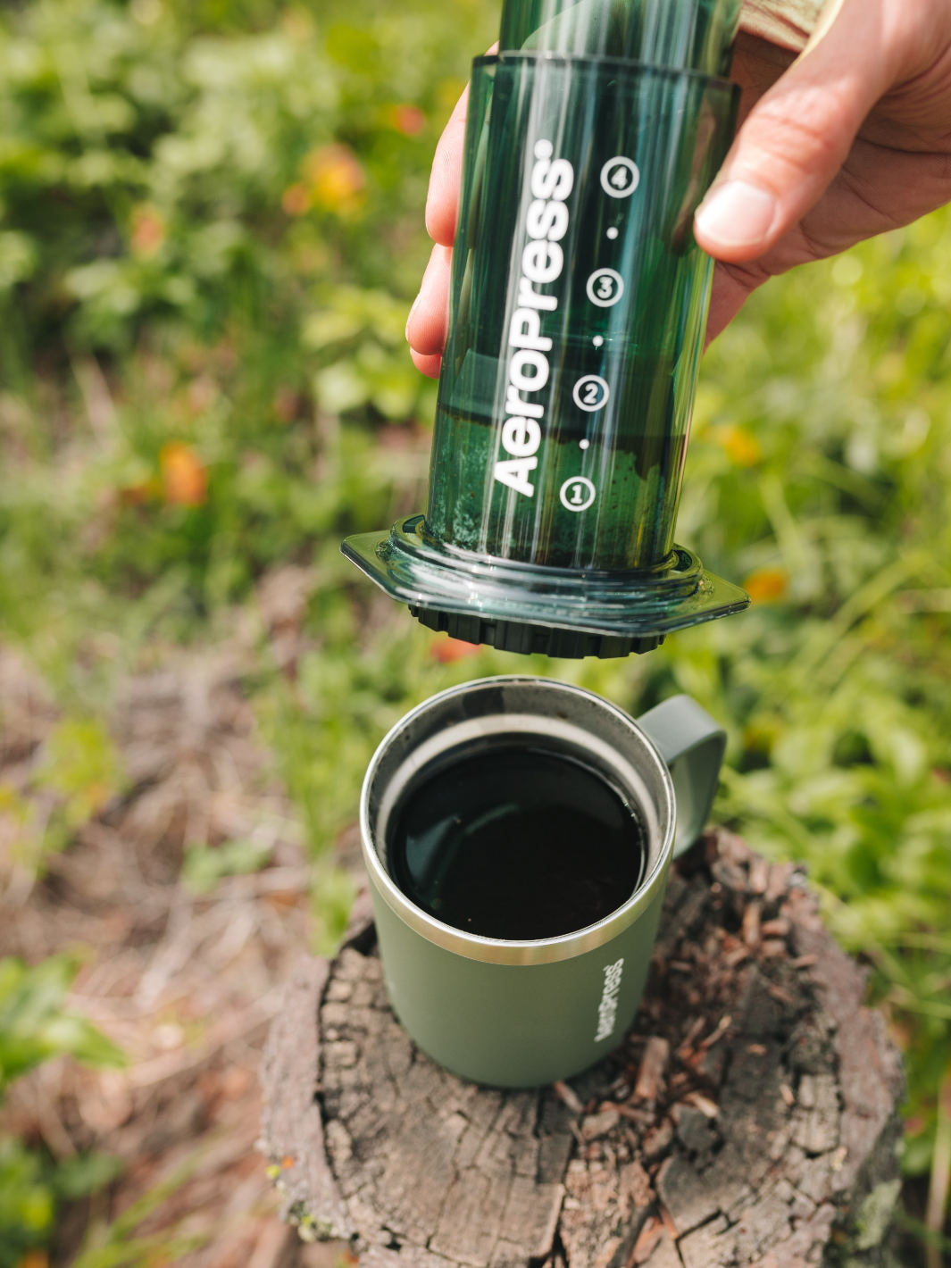 - Turn over onto the top of your favourite sturdy mug and push down the plunge until the AeroPress is empty, and you hear a slight hissing sound.